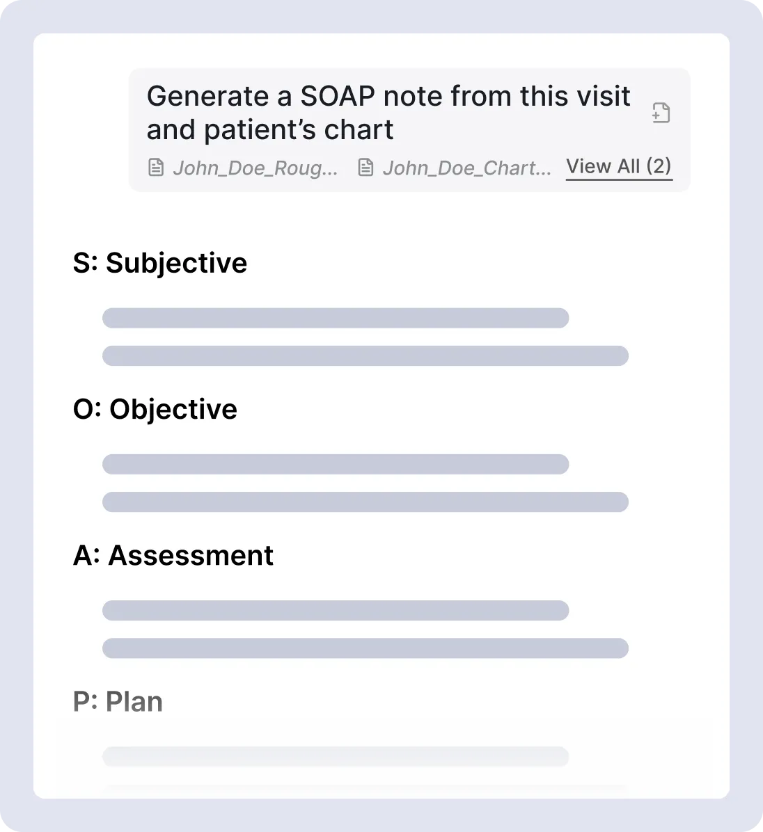Generate structured SOAP or narrative AI progress notes from recordings, dictation, or pasted clinical data.